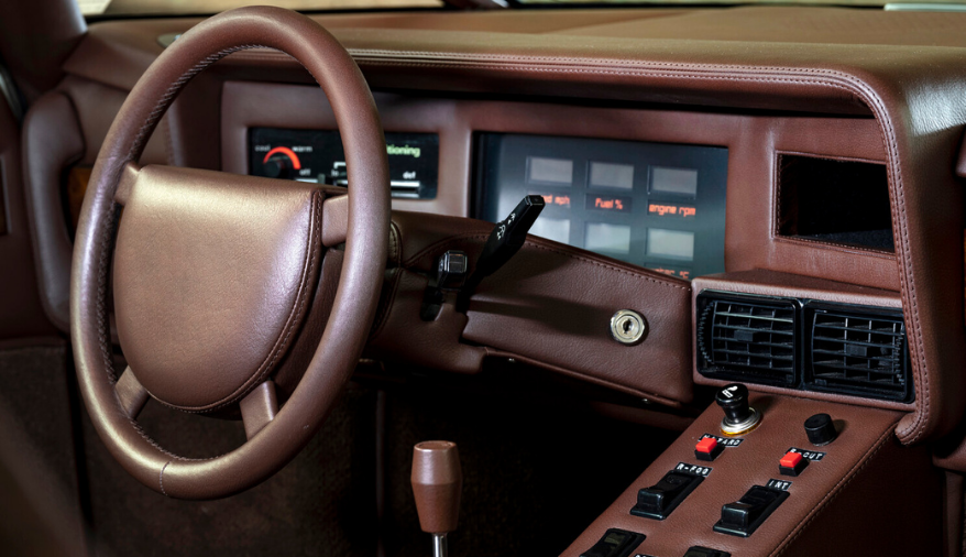 Bulldog’un iç mekânına gullwing (martı kanadı) kapılar aracılığıyla giriliyordu. Kabin de dış tasarım kadar etkileyiciydi. İç mekânın geniş bölümleri özel halılarla kaplanmış, iki koltuk el dikimi kahverengi deriyle kaplanmıştı. Kapı panelleri ve gösterge panelinde parlak burr walnut ahşap kullanılmıştı. Tavan döşemesi ise kahverengi deri kaplıydı ve dönemin karakteristik 1980’ler hi-fi sistemi için birçok kontrol düğmesini barındırıyordu.